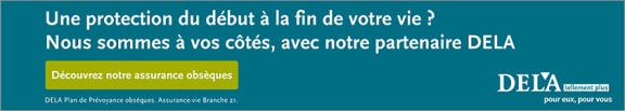Une assurance obsèques – ou assurance décès – est une assurance qui couvre les coûts liés à un enterrement ou à une crémation. Chez DELA, nous appelons cela le Plan de Prévoyance obsèques DELA.